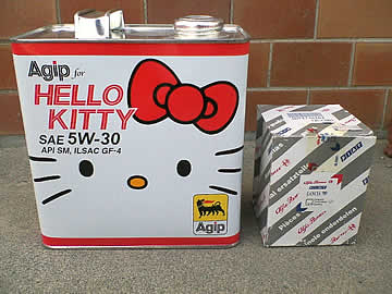 1年間ほどストアしていたポンコツイタ車のタイミングベルト交換をした際に、ベンチテストを兼ねてエンジン内を2回ほどフラッシング、このクルマには一寸もったいない100%化学合成オイルでリンスをしたのが約半年前。500kmか1000km程動いたらフィルターごと交換のつもりだった予定がやってまいりました。イタ車のオイルといえば、もちろん当然泣く子も黙るAgipに限ります。最近は2歳の甥っ子すら黄色地に黒のキメイラをみて「アジップ!」という時代です。しかしながら、当の会社は親公社のENI(エニ)にブランドスイッチ、泣く子も黙ったEuroSportsも今は昔となって、最近のアジップは、なんとキティちゃんでした。▲アジップとキティちゃんのコラボ企画とかいうエンジンオイル(笑)右側は純正フィルターだが、この後とんだ出来事に続く。▲ブロック前側についているのがフィルター。こいつが曲者でした。フィルターを換えようが換えまいが、いつも私は下抜きです。その理由はスラッジを多く抜けるから。18歳のときに気づきました。これも長年アジップを使ったからこその気づきです。さて、しっかりとオイルを抜きフィルターも外して、しばらくした頃合いに新品フィルターをつけますがつきません。先ほどの純正フィルターは、某イタリア車専門のショップで車両とエンジン形式を説明してから購入したものなのですが、パッキン径、ねじ径は同じものの、ねじピッチが異なるので奥まで届かないのです(泣)。あれどうしておかしいな、と思って再チャレンジしてみたりしましたが、ねじのピッチが違うのですから締まるわけがありません!それでは今までのは何だったのかと思ってみていると、ピストンで有名なドイツ・マーレ社の社外品。これをつけたのは、私がストアする前の整備工場でしょうから大体どのような作業をするのか見当がつきました。昔よく耳にした方式だと思います。そうすると、オイルは抜いちゃったしフィルターはないしクルマは動かないしで、どうにかして新品フィルターを購入しなければなりません。早速スーパーオートバックスに走り、外したマーレの社外品と売り場のフィルターを比べていたら、どうみても怪しい客に思われたらしくベテラン店員さんに声を掛けられました。これこれかくかくしかじかでランチア用のフィルターを買わないといけなんですが、フィアット用はありますか?「あー、申し訳ありません。全てのメーカを取り揃えるのはちょっと・・・」というわけで、ベテラン店員氏はネットで調べてくれることになり、私は店頭の適合表で悪戦苦闘することになり、出た統一見解は皆様ご想像の通りアルファロメオ4気筒用のフィルターで代用が可能かどうかのその一点でした。ちなみに、私のYの場合はいつもおなじみのヘインズのマニュアルでフィアット4気筒との互換性が頭にバッチリ入っていますので、複数あるアルファ4気筒用のフィルターから「コレ」というものを無事見つけ出すことに成功。もちろんお店には返品等でご迷惑をかけないからと言って売ってもらいました。▲左から外したマーレの社外品。ねじピッチが違って使えなかった純正品。右が今回の観音様だったボッシュのアルファ用。ジャッキアップしたまま放置していたクルマに早速取り付けてみるとサイズ・容量ともにバッチリOKで、これで晴れてキティちゃんに飛び込んでもらいました。フィルター交換して3Lで丁度よく、もちろん回転もスムーズになりましたが、かつての麻薬の魅力のような泣く子も黙るキメイラは火を噴かなくなったようなフィーリングです。ただ昨今のエンジンオイルは素晴らしく進化しており、今回のちょっとしたトラブルつきのエンジンオイル交換でも、色々と学びをヴァージョンアップする気づきがありました。さあ、いよいよランチアランチ?感謝!