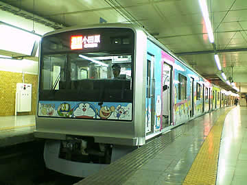 朝の通勤で列車に乗ろうと、ホームに入ってくる電車をみたらドラえもんのラッピング電車でした。正式にはFトレインというのだそうで、9月3日に向ヶ丘遊園で藤子・F・不二雄ミュージアムがオープンするのに合わせたキャンペーン列車だそうです。外装は、いわゆるラッピングバスと同じ方式で、3Mのダイノックシートではないでしょうか。ステン上の青帯とODAKYUロゴの上からベタ貼りされています。ダイノックといえば、貼るときのエア噛み防止の工夫には感心したのですけれども、剥がすときにはどうするのでしょうか。やっぱりポリデントのようにはいかないのでしょうか??(笑)さて、車内も藤子・F・不二雄ワールドになっていて、つり革広告は各キャラクターのモチーフが散りばめられたフレンドリーなもの。乗っていて楽しいです。ところで、ドラえもんって人気があるんですねえ。乗る人降りる人ホームにいる人、みんな写真を撮ってます。子どもが電車を背にポーズをとっていたりしてスゴイですね。1編成しかないそうですので、滅多にお目に掛かれないようですが、じつは私もう2回目でした(笑)感謝!