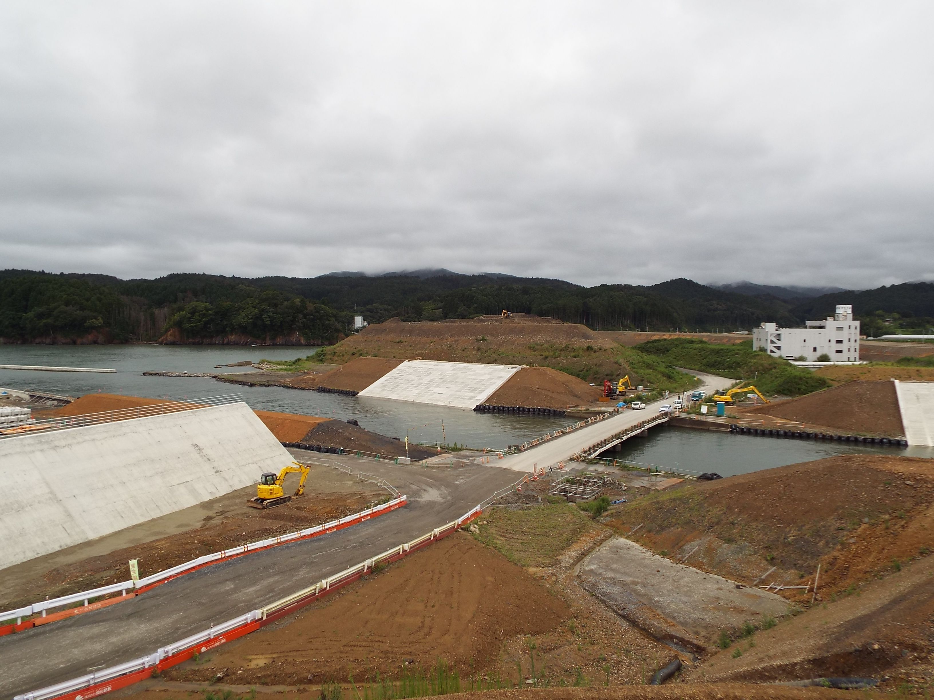 帰り道、志津川付近。この辺りも元々住宅地だったらしいですが津波で全滅。かさ上げ工事が進んでおりました。