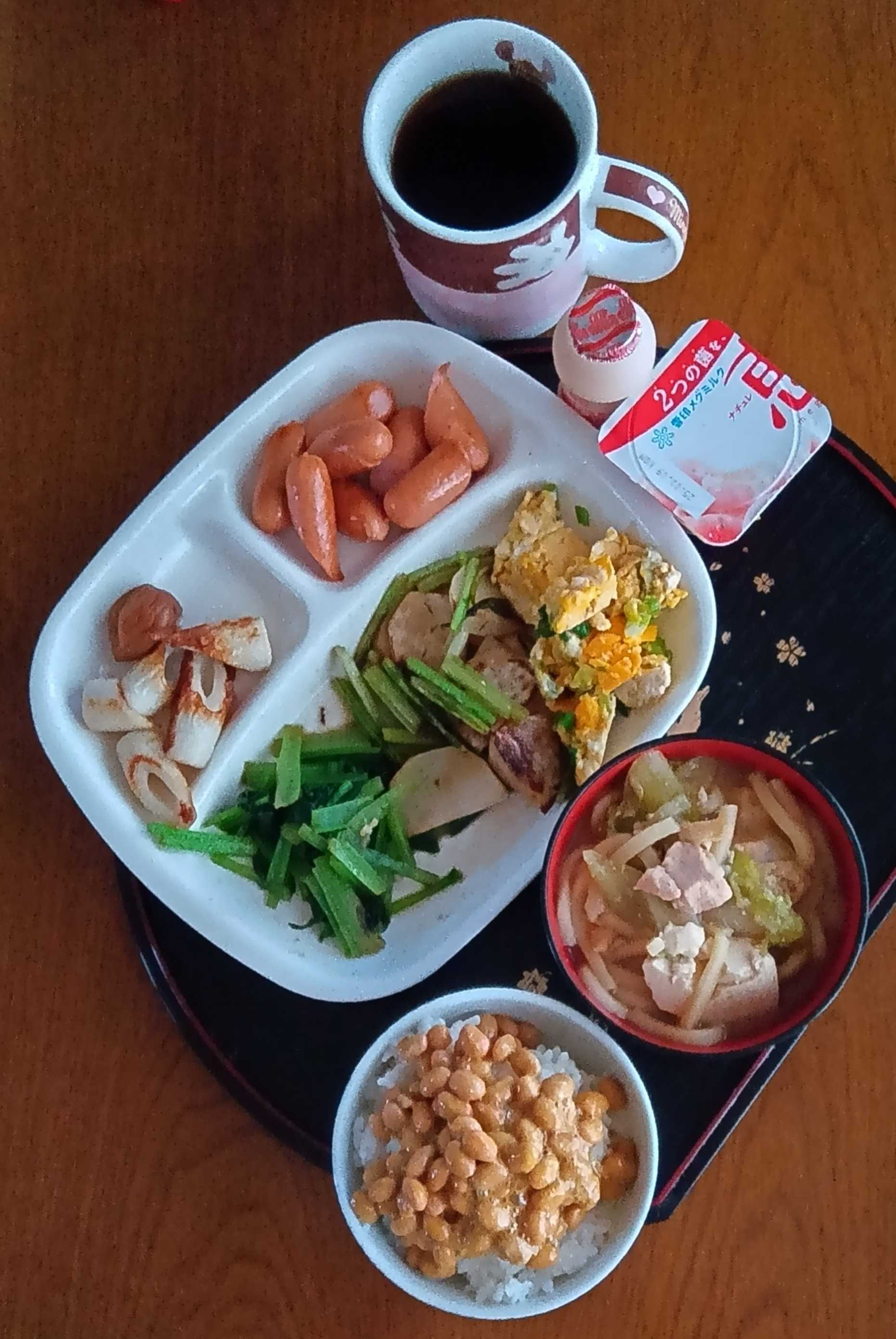 納豆は国産大粒納豆、ヨーグルトと乳酸菌飲料もあり。