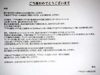 夜になったら、やけに冷えてきましたよ。気付けば、秋の虫の声も聞こえません。これって、いつからだろう???全然、気付きませんでした!外に出ると、まだ蛾も蚊もかなりいるし、バッタもトンボもカマキリもいるんだけどなー・・・。もしかして、いるけど寒くて活動出来ずにいるってことか?確かに、今夜は、やけに寒いッす!室温は、昼間とたいして変わらない20度なんだけど、とてもじゃないけど、暖房無しではいられません。もしかして、外気温は、16度前後ぐらいか???夕方の天気予報で、明日の朝が、この秋1番の冷え込みになるとか言ってたなー・・・。予想最低気温が、13度だって!こりゃ、電気敷毛布を使って寝た方が良さそうだなー。身体を冷やさないように気を付けないと、明日は絶対風邪が悪化しちゃうに違いない!みなさまも、お気を付け下さい!話は変わって、夕方、宅配便がおいら宛に小さな箱を届けてくれました。何かと思えば、中身は、「アサヒ極旨ご試飲キット」!!!「アサヒ極旨発売前10万名様ご試飲モニターキャンペーン」ってのに当選したらしい。極旨の350ml缶が3本と特製ゴクうまグラスが1個入ってました。うれしい!久々に、タダ酒が飲めるわ!あれ???ところで、極旨って、まだ発売されてなかったの?ま、良いんだけど・・・。まだ飲んでいないので、どんな味かはわかりません。といって、出来れば体調が悪い時には、飲みたくありませんね。極旨をおいしくいただくためにも、早く風邪を治さないとなー・・・。飲んだら、アンケートに答えるようになってますわ!ってことは、あんまり先延ばしにも出来ないのね・・・。今夜は、暖かくしてさっさと寝ることにしますわ!