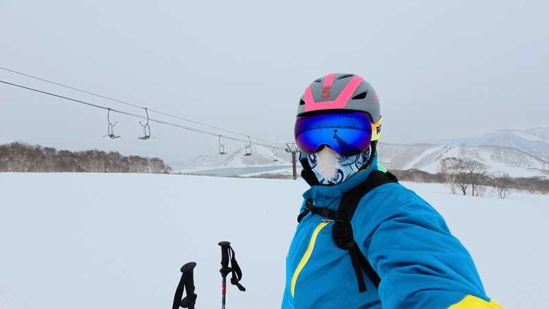 ベチャベチャ雪が、ゴーグルに貼り付いて、
