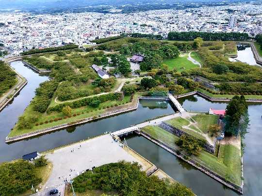 目次はこちら 函館の観光地として 絶対にはずせない五稜郭。 五稜郭タワー展望台へ Go!! 大人一般 1,200円 学生の多さにビックリ。 チケット買うのも ひと苦労。 ちょっと感動するね。 生で見ると。 小学6年の時の修学旅行。 函館だったんだけど、 覚えてるのって、この五稜郭と バター飴 買った事ぐらい。(エッ) ささ。星の中に行こう!! 特別史跡の五稜郭。 「箱館奉行所」があるが 歴史も幕末にも興味のない σ(・_・; 同行者が見学すると言うので hagi_hisa は、松の下で休憩。 帰宅後 調べてみたら、 奉行所付近の松って、 樹齢160年以上ですと。 幹に1~100番のプレートが 付いてるんですって。(ほぉー) お堀周りの木々も まん丸に刈られて可愛いの。 さて、次は σ(*'ω'*) の目的地へ。 つづく。