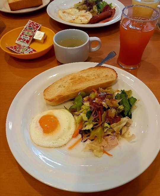 ワンコインで食べれるよ~♪ 朝は軽めにしときたいな♪ って時に最適なガストの朝メニュー。 ライトモーニングプレート ●目玉焼き 1ッ ●サラダ ●ソフトフランス 半分 (マーガリン付き) ●日替わりスープバー ●ドリンクバー 「ケチャップあり」 「ドレッシングなし」 はタブレットで選択可能。 で、たったの 500円!! それも税込価格で。 ドリンクバー付きでこの値段は 安いワ~♪ ありがたいワ~♪