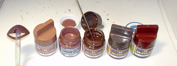 今日も鉄道模型はお休みです。 今日は午前にHGUCゴッグの塗装をしました。ボディの茶色の塗装です。ちなみにゴッグ製作開始から7日間工作してます。 まず、最初に塗料ですが、専用のガンダムカラーを塗ろうと蓋を開けてみました。すると何か色が微妙に違います。キットの色は赤茶っぽいのに、塗料はココアみたいに白っぽいです。違いすぎるので、所有している茶系統の色を探してみました。写真は左から、成型色部品、ウッドブラウン、ガンダムカラーの指定の茶、レッドブラウン、マホガニー、艦底色 で、比較しますとレッドブラウンがビンゴのようですね。迷わず、調色せずに噴きました。これって旧キットの指定の色ですねぇ。成型色とほとんど同じなので、とてもきれいにできました。 今日の塗装はそのほかに、推進装置(背中の)も塗装しました。こちらはHGUCのキットでの指定色は混ぜる必要があり、その元の色を持っていなかったのでやめて、近い色を探しました。で、結局は、旧キットで指定のミディアムブルーが最も近かったので、両キット同時にミディアムブルーを噴きました。 旧キットは腕パーツを接着して組み立てました。接着剤乾燥中です。写真は仮組みです。 続きの黄土色の手足を塗装しようと思いましたが、シンナー臭が鼻の中に残っていて気持ち悪いのでやめました。早くブースを買わないといけないですね。クリーナーボトルも。