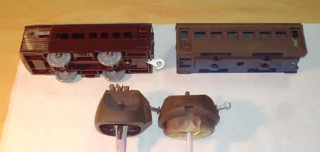 1日遅れの日記です。昨日の日記にも写真追加しました。(やっとブログ書く時間が取れました。) 今回もオハ35の続きです。 床下機器パーツを組み立てて、車体と屋根を接着しました。 あっ、日記1行で終わっちゃった。って、それ以上のことできてません。 これで、いよいよ塗装に移ります。塗装の手順は次のとおり。1)屋根上をダークグレーで噴く2)つや消しクリアを噴く3)屋根をマスキングして車体側面を茶色で噴く4)車体側面につやありクリアを噴く5)床下につや消し黒、または黒+つや消しクリアを噴く おー、超シンプル塗装です!1両ならお気楽です。<オハ35のこれまでの作業> 作業日数 計4日 作業時間 今回約30分、計約2時間 2005年10月19日 製作開始