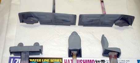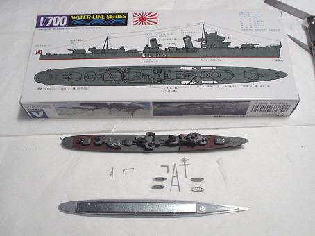まず、本日のお買い物です。 タミヤTX-79 リノリウム甲板色、とTX-78 木甲板色を求めてお店に行ったのですが、どちらもありませんでした。なので、TS-69 リノリウム甲板色のスプレーを購入しました。 それから、初霜の艦体色ですが、先日佐世保(箱に書いてあった)と書きましたが、よく調べると浦賀です。なので、クレオスのC32 軍艦色(2) も購入です。 それから、タイラー(400番)も試しに買ってみます。 それからそれから、お店にいくとキケンですね。誘惑に負けて、また艦船を買ってしまいました。今回は、菊水作戦の二の丸?の軽巡洋艦矢矧です。何か見ていて欲しくなっちゃったので。GSIクレオス 【塗料】Mr.カラー 軍艦色(2) タイラー 400 下地用 さて、続いて夜の工作の部です! 本日は、魚雷発射装置の接着、艦橋部分を組立、前後の機銃とベースの接着を行いました。 艦橋ですが、パーツが小さいので、アンテナ類を接着するのが大変です。 作業は地味で、あまり進んでいるように見えませんが、整形に時間をかなりとられています。ヘ(>
