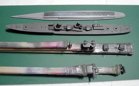 今日も駆逐艦、初霜の工作です。 本日は少ししか作業の時間取れませんでしたが、パテ修正等をちょこっとだけ行いました。だって、早く塗装に移りたいし、パテの硬化時間って結構かかるしね。 で、今日はまた、タイラーを使って初霜の艦体のヒケ部分のパテ埋め後の処理を行いました。今回はパテ盛り2回目の整形です。 ま、作業は単純ですのですぐに終わります。そして、状況チェックです。 ん~、一応いいんですが、ちょっと筋傷?が残ってしまった感じ。もう1回だけ溶きパテ塗って終わりにしますかね。そうすればやっと塗装に移れるでしょう! それから、少しだけ、軽巡洋艦矢矧の部品切り出しを行いました。 今日はここまでで~す。
