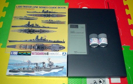 土曜の日記です。前日の金曜も矢矧の部品の切り出しをちょこっと行いましたが、ここに書くに値するだけのことしてないので、省略です。 本日は、いよいよですが、駆逐艦初霜の艦体の塗装を行いました。 初霜は浦賀(横須賀)製なので、塗料は、クレオスのMr.カラー、32軍艦色2を使用します。塗装箇所は、艦体と艦橋、砲台等です。 こうやって、色を見ますと成型色よりもだいぶ濃いグレーですね。艦底部分は成型色なので、比べるとよくわかります。 次はマスキングしてリノリウム色を甲板に噴く予定です。****************************************************************** 続いて本日のお買い物日記です。 今回は、タミヤアクリルのXF-78木甲板色、XF-79リノリウム甲板色、X-20Aアクリル溶剤(特大)を買ってきました。先日、リノリウム色のスプレーを購入しましたが、エアブラシの方が噴きやすいのこちらを使おうかと思います。****************************************************************** 次は軽巡洋艦矢矧の部品切り出しの続きです。 特記するような点はありませんが、ちまちまと整形しながら進めてます。前回の写真と比べるとわかりますが、大して進んでない…。(T^T)ウッウッウッ。 このくらいゆっくりペースがいいのかも。でも、艦船ブームが冷めないうちに完成させなきゃ! 最近の艦船ブーム、これを目指して頑張ってます(笑)。 そうそう、上記の塗料を購入しに行った時、これを見かけました!いやぁ、現金持ってたら買っちゃいそうでした。ほひぃです。