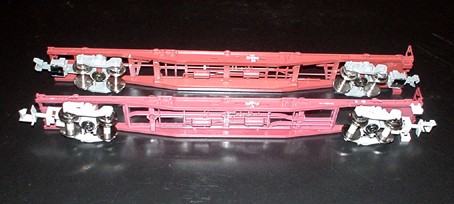 コキ71の低床、小径車輪は、実車をスケールダウンした大きさとなり、見事に直径φ4の車輪が再現されていました。そして連結器は低床のため、ボディマウント構造のアーノルドタイプに。しかし、特殊なカプラー基部のため、他のカプラーに交換は不可能かなぁといった構造です。その気になればできるんでしょうけど、大掛かりになりそうなので、ちょっともったいないかな。