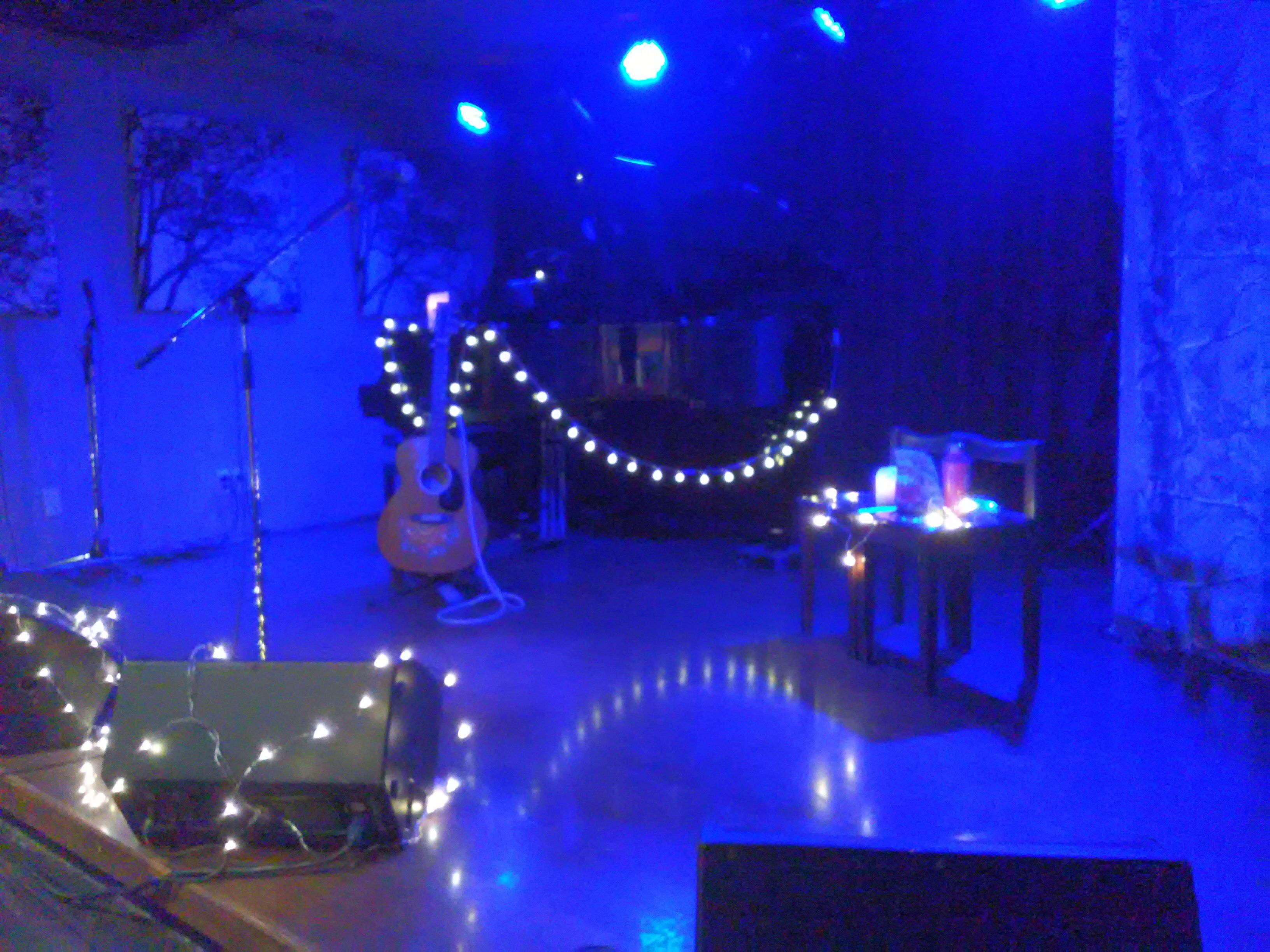 最初、下手(しもて)の壁際前から2番目にしようかと思いましたが、上手(かみて)壁際ソファーの一番前が空いていたので、そちらに移動。