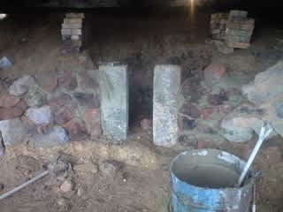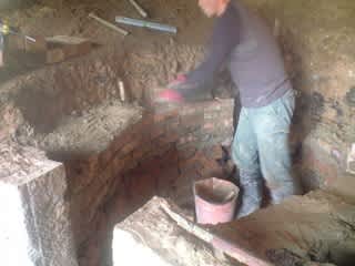 下の方は前の石積みの壁を利用、中段から上は耐火れんがをキチンと積んでいます。