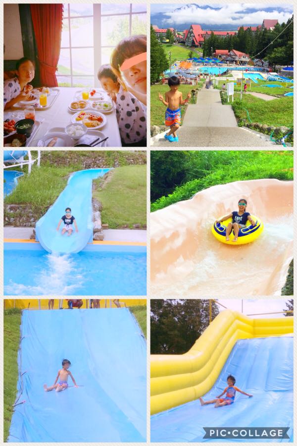 2日目は、上越国際に移動です。 途中、群馬県の道の駅に寄ったりしながらのんびり向かいました。 2回目なので、勝手も分かりチェックインやらホテル内移動などもすんなりでした。 今年は、子供プールの券をゲットしていたので着いてすぐに子供プールで遊びました。 このプールは、ぬるくしてあるので小雨が降っていましたがそんなに寒くなく遊べました!! プールの後に、お風呂に入ってお部屋に行き、まったりしました。 夕方、ホテルでやっている縁日に行き、くじやら千本引きやらサイコロなどで商品ゲットして子供達は相当楽しかったみたい♡ その後に、夕食のビュッフェ♫ 去年とは違うレストランでした!! お腹いっぱい食べて、またお部屋でゴロゴロして寝ましたzzz