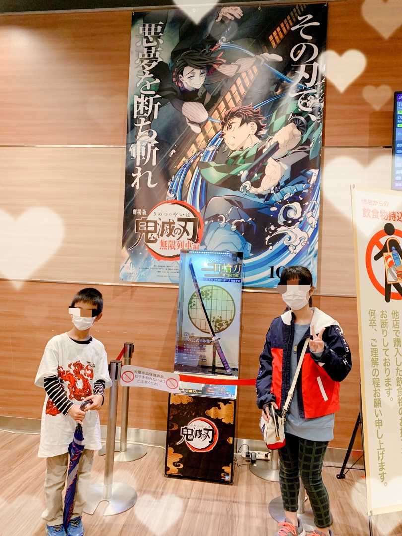 きのう、子供達がずーーーーっと楽しみにしていた鬼滅の刃の映画を観に行ってきました!! 旦那も密かに楽しみにしていたみたいなので3席予約しましたー。 地上波で特別編とアニメを放送していたので息子の盛り上がりは最高潮で前日から善逸のマネっ子をしていて、見ていない私もセリフ覚えてしまいそうです。 当日は、鬼滅の刃のTシャツを着て挑みました笑 3人が観ている間、私はショッピングモールブラブラしたり買い物したりして、観終わった3人と合流しました。 3人は大号泣したらしい。旦那は映画などであまり泣かないのに、大号泣したみたい。。 余韻の3人との温度差がありすぎて話しについていけませんでした。 とにかく、内容全て知っているのに(漫画ではすでに終わっているため)それでも凄く良かったらしい。。 ちなみに、入場者特典で鬼滅の刃零という薄い漫画本と塗り絵を貰ったらしい。それさえも子供達には宝物みたい。 その熱量のまま、くら寿司に行きました。くら寿司は鬼滅の刃とコラボしていて、色々グッズを貰えるので、興奮状態の3人は興奮してお寿司を食べてました笑 食べた皿4枚づつでゲームが発動して当たれば鬼滅の刃のグッズがもらえるのです。 当たったのは、4千円ちょっと食べて2個当たりました!! 不死川さんの缶バッチと、ねずこのキーホルダーが当たりました!! あと、お会計で下敷きも残ってました!! メインキャラクター達はすでに終了してましたが、絶対終わってると分かっていたので残っていただけ良かった笑