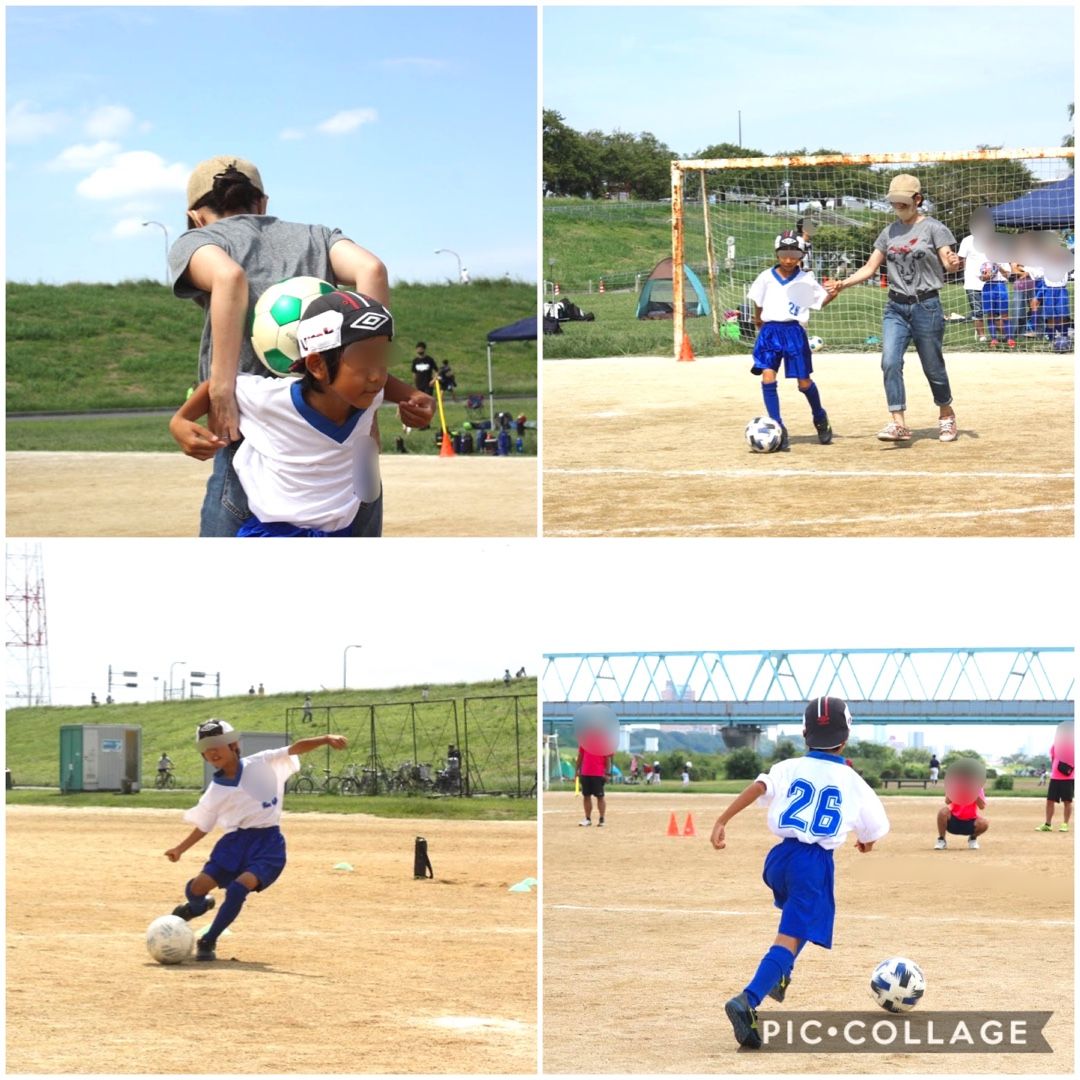 息子君、今日地元のサッカーチームの体験をして楽しかったらしく正式にチームに入ることになりました!! サッカーはずっとやりたいと言っていたのですが、私の腰が中々上がらずに小学生になってしまいました。。 先週、私が小学校のPTAの集まりで土曜日に学校に行ったら、校庭で練習していて見学した所からトントンびょうしで体験することになりました。 息子君は体験当日まで緊張していて、やっぱりやめるとか言ってた、、 当日は、9時から12時まで!!! 他の小学校の校庭で練習です!! 今日はピーカンで29℃まで上がったので赤い顔しながら必死にみんなについて行ってました!! 最後の方は試合形式だったのですが息子君シュートが決まって1点取れました!! それが凄く自信になったみたいで、辛そうな練習でしたが入りたい!!と言ってきました!! そこから、シューズやら練習着、ソックスにすね当て、サッカー用の帽子などを買ったら15000円くらいかかってしまいました。。(*_*) 性格も行動も、おっとりな息子君なのでサッカーを通じて男らしさが少しでも出てきてくれるといーな。。 頑張れ〜〜!!!