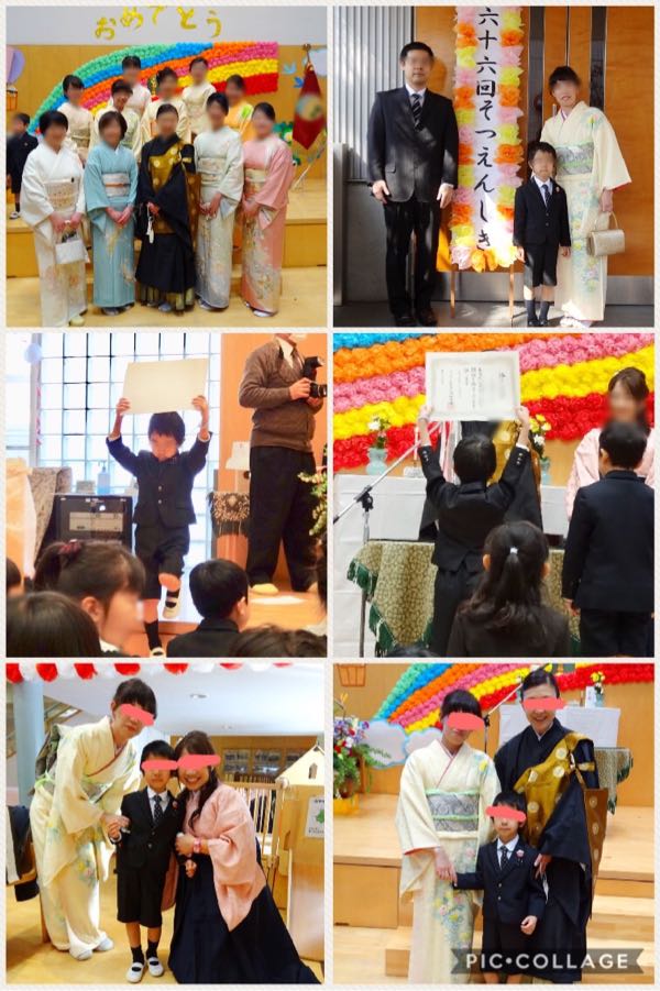 きのう息子くん無事に卒園しました。。 とっても感動しました(T ^ T) 私自身も最後の幼稚園。。身内の不幸などもありこの3年間は色々思うことのある3年間でした。 姉の死で幼稚園に行きたくないと、思ったこともありましたが、通うことで自分を保つことができました。 役員をやらせて頂いて少しの間でも忘れる事が出来ました。 お母さんにとって、とても大変な幼稚園ですが、私の心を助けてくれたのは幼稚園だったと思います。 息子君も、卒園が寂しく先生と写真とる時は、ずっと泣いてました。。子供が泣くと母も先生も泣いてしまいます(TT) とても良いお式でした!! そして、おとといの最後のお弁当も息子君に最初で最後のキャラ弁作りました!!