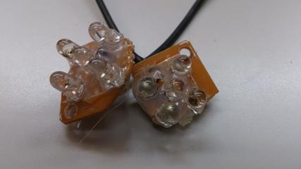 ウチの通勤快速スーパーカブさんはいろいろと実験の対象になっているのですが昨年はLED強化ということでウインカーがLEDに換装されておりました。内部のユニット丸ごとぬいてLEDのユニットと入れ替えてたのですがLEDが死にました。片側点かなくなっていて点検要るなと思ってたら両方点かなくなり取り急ぎ分解!LEDが爆発か?素子のところから黒いものが外に向かって飛び出してる簡単な回路ですが電流は制御してたので電圧がもんだいかなぁ??とりあえずT10のソケットに換装電球をいれました。リレー問題もありもうちょいウインカーLED化は楽しめそうです。