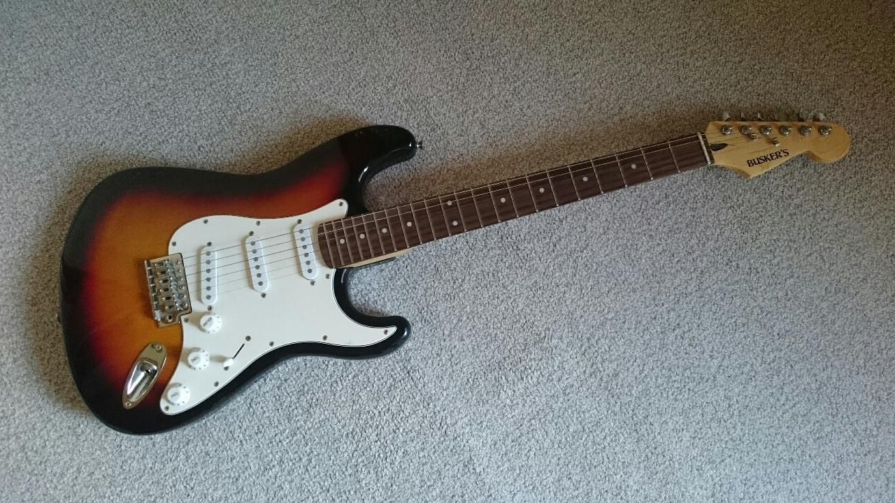 リサイクルショップで激安ギターを探すのが半ば趣味になりつつありますがギターの練習するよりいろんなギター(激安ですが)引いてみたい欲求に駆られています。で、今回見つけたのは「BUSKER'Sのストラトキャスター」です。これもまたとてもきれいです。BUSKER'S は島村楽器さんのブランドで初心者向きの至れり尽くせりセットでの販売。大体2万円台といったところでしょう。がセットで2万円の見た目ではないですね。バーストの塗装もかなりキレイで指板やロッド回りの処理も丁寧にされています。この時点での欠点を上げるとすればフレットの端の処理が甘いということでしょうか?たまに手に刺さります・・・。音は少々ボヤっとした感じですがキレイな音が出ます。エフェクター次第でいろいろ遊べるんじゃないでしょうか?音を楽しむBUSKER'S BST-2H/FM 2TS エレキギター 初心者セット ミニアンプ 入門セット【ストラトキャスター】 【バスカーズ】 【オンラインストア限定】