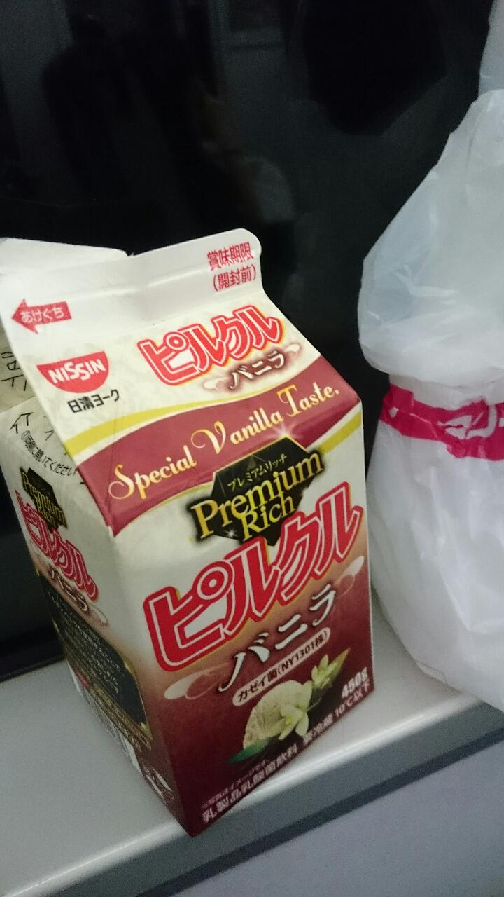 大阪への旅の途中。変わった飲み物を発見!ピルクルバニラジャケ買いならぬ見た目買い・・・。思ったより普通でした・・・。日清ヨーク ピルクル 65ml×10