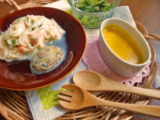 *ミオの土曜の夕ごはん&今日の昼ごはん* 煮込みうどん ・うどん ・カボチャ ・ニンジン ・椎茸 ・和風だし、醤油 モヤシの白身魚のペースト和え ・モヤシ ・BF(白身魚と緑黄色野菜) お味噌汁(大人用の取り分け) ・豆腐 ・ワカメ ・和風だし、味噌 スティックパン ・食パン1枚 シチュー ・ほうれん草 ・ニンジン ・玉ねぎ ・鶏肉 ・ホワイトソース、フォロミ フルーツバナナ ・バナナ ・くだものまんま なるべく、1回の離乳食に3品は出したい・・ と思っているんですが、2品どまりがほとんどです。 なので今回はやや無理矢理3品に。 でも、もう何を作っていいのやら(´∀`;) と、最近ネタ切れ気味 今までは離乳食の本見ながら献立立ててたんですが、 最近はそれすらサボりがちに (要領悪いもんで、献立立てるだけでも結構時間かかるぅ) でも大人用からの取り分けも 段々できてくる時期なので、 それはちょっと楽になった・・・・かなー 昨日のお昼ごはんはパパの作った親子丼の具を 水で薄めて、ミオも親子丼でした♪楽♪ (なので写真すら撮ってない) ネタ切れ気味なので、 取り分けメニューがこれから増えそうだなー^^ ← ポチっと応援してくれると嬉しいです★