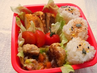 *日曜お昼のミオごはん* ふりかけおにぎり 野菜あんかけハンバーグ ・ハンバーグ(豚ひき肉、玉ねぎ、パン粉、卵) ・野菜あん(ニンジン、白菜、椎茸、 和風だし、みりん、片栗粉) 納豆入りだし巻き卵 ・納豆、卵、和風だし、砂糖 プチトマト お弁当、リベンジしてみました 今回のは、私的にはなかなかいい感じに詰め込めたと思う!思いたい!! ↓ 前回の、なんだか残念なお弁当(笑) 少し小さいお弁当箱にして、スキマがあかないように詰め込んでみたら 前回よりいい感じになったので、リベンジできたんじゃないかなー♪ この日もお昼の時間だけ実家でみててもらってたので ご飯中の写真はナシでふ。 どうだった~?と聞いてみたら 卵焼きとトマトは1つだけ食べて後はお残し。 それ以外は全部食べたとの事。 (あ、敷いてあるレタスは食べてないです。母が食べてくれたw) あれー。納豆大好きだから卵焼きもイケルと思ったんだけどなー? 2つお残しなんて予想外。 卵焼きあまり好きじゃないのかな? 次もまた頑張ろう ★おまけ★ お出かけ前の午前中。パパとお絵かきタイム(´∀`) ← ポチっと応援してくれると嬉しいです★