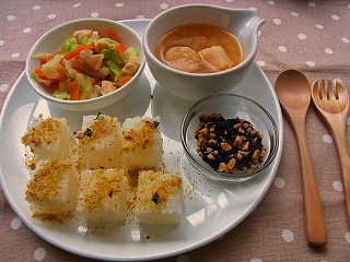 *お昼のミオごはん*(完了期) おにぎり ・ご飯、カツオ節 ロールキャベツ ・キャベツ、豚ひき肉、玉ねぎ、コンソメ ポテトのミートソースグラタン ・ジャガイモ、ミートソース、 ホワイトソース、パン粉 白菜のミルクスープ ・白菜、フォロミ、野菜スープ ミオごはん、最近おにぎり率高し。ですッ なぜなら、手づかみメニューとして楽だからーー!!ヽ(≧∀≦)ノ 食べ終わるまで時間がかかるのが難点ですが・・^^; (このメニューも、食べ終わるのに40分程) おにぎりを食べやすいようにお皿に広げてみました。 さっそく手を伸ばして食べてます。 おにぎりウマウマ。 途中からごはん全般冷たくなってるけどねー(´∀`) ぜんぶたべたよ! はい。ごちそうさまでしたー(´人`) ******************************** 突然ですが、ブログをお引越しする予定です 数年前まで使っていたFC2ブログへお引越しします。 → コチラ しばらくは、こっちとFC2両方更新しつつ今月中には完全移行の予定! 楽天ブログにも慣れて、少し悩みましたが・・ 思い切ってお引越し! お引越しした後は、 こっちのブログはたまーに更新する買い物日記くらいになりそうです^^ 以上、お知らせでしたー ← ポチっと応援してくれると嬉しいです★