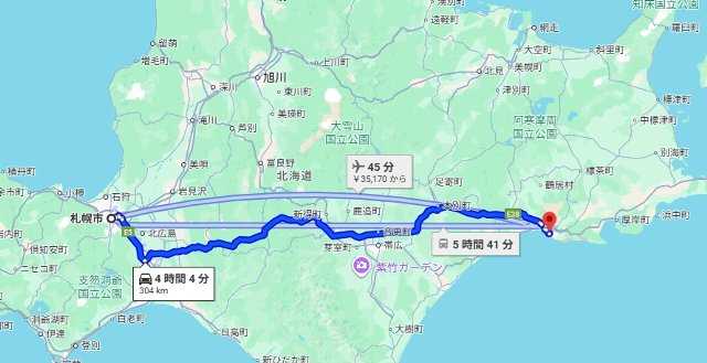 まずは札幌から釧路まで高速ノンストップで走ると5時間41分