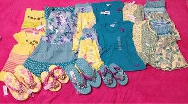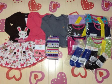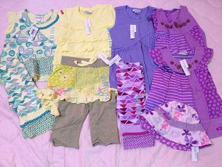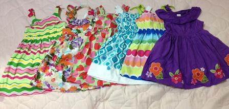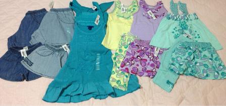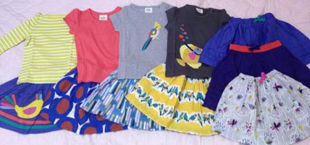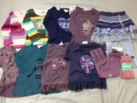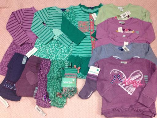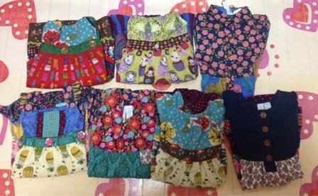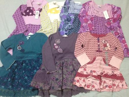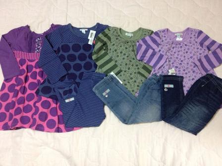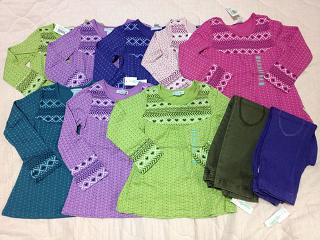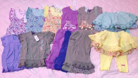 長女には普段ほぼ試着はさせません。なので、サイズが大丈夫か特に考えもせずにガンガンおそろいで買ってました。が・・・今年中学に入った長女はここ1年で急激に成長(特にお尻)していて10yのボトムが今でぴったり、夏には無理そうだということが途中で判明しました。でもそのときにはすでに他にもオーダーしてしまっていて、履けないとわかってるのに届くのは悲しいですトップスは大丈夫ですが、ちょっと作りが大きめのショートパンツしか無理なので(レギンスは夏じゃなく今でもすでに無理)ボトムの数にあわせると自然にトップスも減ります。次回の到着品はドレスばっかりたくさん写ってると思います(笑)次女は相変わらずボトムは18-24mで十分です。