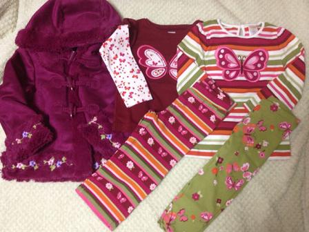今回もたくさんの方にオーダーいただき合計2便?3便オーダーしました。新作のバンビシリーズも迷ったんですが、色合い的に大好きなバタフライのシリーズで統一しました。今期秋物のサイズ感わからずとりあえずトップス2ボトム18-24mでオーダーしました。娘さん・・・3歳3ヶ月小さめで88センチ11キロです。結果・・・トップスは全体的に大きすぎてうまく切れず、ボトムは太くて丈が短く足首が見てるダボパンになりましたコートは中がモコモコのボアでそとがスムースなフェイクムートンぽくてNaaにもあいそうだしお気に入りです。