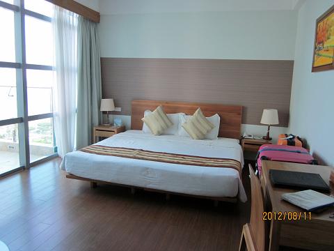 ニャチャンのホテルも事前に日本から予約していました。が、最初からもめました。部屋が狭くなるからエキストラベッドは不要だと言うと追加料金がかかると。後でわかったことですが、うちの長女の分の追加料金(大人2+子供1)を事前に支払っていないと思っていたようです7泊スイートで4万5000円くらいでした。ここではルームサービスかなり使いました!とにかく暑いし、これと言って食べたい物もなく、特にチビが食べられるものが少なかったので・・・スパゲティやピザが確か5万ドンくらいだったような。この肉がのったお弁当?めちゃくちゃおいしいんです!ベトナムで食べたものの中で1番おいしいと子供達も言ってました。肉1枚で2万5000、これは追加して3万5000バインミーは日向の屋台で売っているものは心配でショップで購入しました。2万ドン、大きさはかな~り大きくて大人2人でお腹いっぱいになる大きさです。
