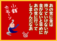 2005年05月18日人生訓?久しぶりに義父の思い出を書いてみたいと思います。 そう、まだ義母がデイサービスでお世話になっていた頃の事です。 その日はデイがお休みで、義母は家に居ました。 お天気も良く、大掃除を始めた時のことです。 父は「花ちゃん悪いね~じゃあ植木の手入れに行ってくるからね~」と言い 階下に降りていきました。 最初母は、いつもの通りその辺をウロウロ。 コタツをあげ、掃除機をかけ始めていた私。 ゴーゴーガーガーとうるさくなると母は「うるさいね~」と言い部屋から出て行ってしまいました。 ヤバっと思ったのですが、昼間だし多少近所に迷惑が掛かっても良いよねと・・。 掃除の続きをしていると、何やら鏡台の下からB4サイズの用紙。 読んでみると、お年寄りの5か条と題した人生訓が書いてあった。 1、老いては子に従え。 何時までも親だからと言って、子供のいうことを聞かないのは嫌われるもと。 自分の意見と多少違っても、子供の言うことを聞きなさい。 ウンウンそうだよね~と私。 2、遠くの親戚より近くの他人。 幾ら親思いの子供が居ても、遠くに居ては役に立たない。 ご近所さんといつも仲良くして、コミュニケーションを取っておく事。 確かに!私だって、1時間掛かるしな~。 やっぱりご近所さんに挨拶行って良かった~と私。 3,4はゴメンなさい。1年以上も前のことなので忘れてしまったのだが、成る程と感心した記憶が有る。 問題は次だ。 5、墓場までお金は持っていけない。 ここまでは、そうだよね~と感心。続きがまだある。 いくらお金が有っても、嫌われては淋しい人生。 ある程度生活できるお金さえあれば良いと考えて、 子供や孫に分け与えては、い・け・な・い。 ナニ~与えては、い・け・な・い?続きは 子供も孫も、お金が有るから寄ってくる。 年寄りがお金が無いほど惨めなものは無い。 お金さえあれば、今の世の中、何とでもなるものだ。 死ぬまで自分で管理せよ。墓場に行ったら諦めろ。 ・・と有ったのだ。 最初私は、良い事書いてある人生訓だな~と感心してたのに、いったい誰が考えたの?と・・・。 読み終えた私は、何か悪いものを見てしまったような気がした。 もし父が、自分の教訓としていたのだとしたら、これを私に見られたくないだろうと思ったからだ。 お年寄りというものは、こんなにも、気を使いながら暮らしているのかと・・。 身内をも信用出来ないのかと思った瞬間だった。 確かに私は鬼嫁よ。 でもね、父の物なんか取らない。 それどころか、今母は父の残してくれた、遺族年金で生活出来ている。 本当に感謝しているのだ。 何故鏡台の下に有ったのか?大事にしていたのか?それとも捨てたものなのか? 今になっては確認できないが、 その頃いったい、父は何を考えていたのだろうか? いまだ疑問。コメント よく行く餃子屋さんに、こんな感じの人生訓が書かれた手ぬぐいが飾ってあります。 でも、一つ一つの解説はなかったなぁ。 今度行ったらよく見てきます。 それにしても5番目の解説はお年寄りには心の支えになるのかも。 ウチの父もお金への執着心がすごいもん(@_@) (2005年05月18日 18時39分31秒) 返事を書く Re:お年寄りの人生訓?(05/18) くまちゃん888 さん うちは、 “いつまでも、あると思うな、親と金!”が、 口癖ですな! うちの場合も、似たようなもので、 親の金は親の金。 子供は子供の金ってことで、 お互い、当てにしない生き方をしていますね。 周囲の友達は、親から幾らお金をもらった、 援助してもらったと言い、 凄くうらやましく思います。 でも、その分、 「面倒を見る」という無言の掟が発生しているのも事実。 両親も、くま達家族も、それぞれ、 金銭面では大変だけど、 お互いを束縛しないためにも、 今の生きかたが、ベストだな~と思うこのごろです。 (2005年05月18日 18時53分52秒) 返事を書く Re[1]:お年寄りの人生訓?(05/18) 花0635 さん 「ぼっち」さん >よく行く餃子屋さんに、こんな感じの人生訓が書かれた手ぬぐいが飾ってあります。 そうなのよ。 私も見たこと有るけど、確かお金には執着するなって書いてあったと記憶しているので、たぶんそのパロディー見たいなものだと思う >でも、一つ一つの解説はなかったなぁ。 正確ではないけど、そのような事書いてあった。 >今度行ったらよく見てきます。 お願いします。 > >それにしても5番目の解説はお年寄りには心の支えになるのかも。 >ウチの父もお金への執着心がすごいもん(@_@) 確かに、本音だと思う。 でもね、なんか虚しかった。 別にお金目当てで、介護になんか行ってないのに、 そんなこと考えてるのかな?と思ったら、悲しくなっちゃった。 (2005年05月18日 19時47分30秒) 返事を書く Re:お年寄りの人生訓?(05/18) リトルスワン さん うんうん、なるほどねぇ~。 「お年寄りの5ヶ条」納得だなぁ。 特に5番目はお年寄りの立場で考えると、うなずけます。 でもお嫁さんとしては、ちょっときついよね。 ここまでくると3・4番が知りたいなぁ。 将来