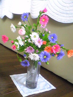 夏はわき汗の悩みってありますよね電車で目の前に座った女性がシャツの下にタンクトップを着てて人目も気にせずわき汗をタオルで何度も拭いてました私も内心え~~ぇここで~何をしてもいいですけど人目につかない場所がいいんじゃないの?そして徐にバックからビニール袋を取り出し今度はミュールからサンダルに履き替えてたりと色々やってくれますそれがおばさまではなく若い女性ですさすがに彼氏の前ではわき汗は拭けないよねしかし、人のふり見て我がふりも直さないとですわしかし暑かったですね~今日は出かけて一度我が家に戻りみゅう達のお家の水遣りに出かけました茄子がちょうどいい具合の大きさになってるのをもいでトマトは日照不足のため?まだ青いから収穫できませんどの野菜も花がたくさん咲いてるからみゅうおねえちゃん達が帰国する頃には食べごろでしょうねそして部屋の窓をすべて開けて、風通ししてる間に韓流ドラマを観てこれが楽しみなのよね~みゅうママからメールが昨日は来なかったから携帯は海外使用になってますがパパの携帯で繋がってるため私はすこし遠慮してましたが、みゅうおねえちゃんとまゆちゃんの様子も気になるのでこっちからメールしましたハードスケジュールでみゅう、まゆはピーピー言うしって返事が返ってきました大人も疲れてるでしょうが子供も同じでそれは機嫌も悪くなるでしょう最終日6時30分起きで朝食、準備など、済州発9時ソウル経由とかしおりには書いてあります羽田着14時55分帰国したら体調悪くならなければいいけどそして翌日土曜日はみゅうおねえちゃんの幼稚園の盆踊り大会とかほとんど練習なしの本番ですなぁ大丈夫かしらそれより起きれるかしらなど心配はつきません何しろ無事に明日は帰国してくれればいいですよ~土曜日一緒に幼稚園行ける?ってママが聞いてきました、また私のハードな時間がはじまりますやれやれ明日はお花の仕上げをしなくっちゃ