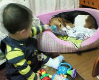昨日、お兄ちゃん一家が遊びにきましたもちろんちびっ子2も来ましたよ~会うたびに成長しているちびっ子2にはとっても驚かされますが・・・花ママは花の成長?にもビックリですちびっ子1の時にはなかなか近づくこともできず精神的なものなのか吐いたりしてしまうことがあった花がちびっ子2にはもう最初から余裕寝ているところでちびっ子2が遊んでいてもまったく気にするそぶりもないんです それどころか・・・自分から近寄っていき軽く耳を引っ張られたり、つかまれたりするくらいは平気。。あんまりひどいと、、ガブッってしますがちびっ子2は泣くどころか笑っています花なりに痛くないように加減してるんですね~お姉ちゃんになった花にとっても感心している花ママです
