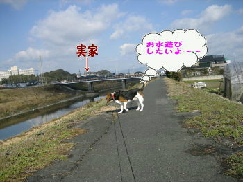 花ちゃん、今年になって始めての川遊びです11月に一度目の足を痛めた(花ママが。。)ときから田舎だし、実家の目の前だしということで?ここでは少しの間だけリードをはずして遊ばせています今日もリードをはずすと・・・ダダダ・・・ダダダ・・・と元気元気 と、、そのうちに・・・この冬の寒い時期にまさかやるまいと思っていたのに・・・やはり、、向かった先は水の中コレで終わればまだヨカッタこれで終わらないのがお水遊び大好きの花やっぱりやってくれました~~本人(犬)は気持ちよさそう見ているこちらはリードを引っ張ろうとしたってあちらとはつながっていないし・・・ブルブルふるって見ていた花ママです。。