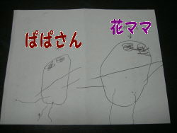 先日、、チビママが遊びに来たときにちびっ子1がぱぱさんと花ママの絵を描いたんだと持って来てくれました~♪それが、これ 何故か花ママの方がデカイそれで・・・今日は・・・絵のお礼にとただいまセール中のドーナッツ屋さんによってちびっ子1のところに持って行きましたピンポ~~~ン♪家の中に入り、フと目が行ったテーブルには・・・同じ箱がすでに二つも並んでいますまるで・・・どこかのCMで見たような光景。。チビパパが買ってきて、、チビママが買ってきて・・そして、、ワタシ。。ほんと~に重なるときは重なるもんなんですね~今日の花