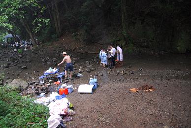 盆休み後半は!(笑)nさん一家、友人一家、Cさんと共に とある河原に行ってきました 私は急に調子が悪くなり・・・ 到着後、暫く車で睡眠を( ̄ー ̄; ヒヤリ 後から、合流したのですが・・・ 合流直後に雨が_| ̄|○|||| みんなから「雨女ー」となじられつつwww 木の下へ避難(笑) BBQコンロは思いっきり雨にあたる位置だったので 雨が当たらない所に避難させると 川の中になりました(笑) やはり、調子がいまいちだったせいか 色々、持ってくるのを忘れていて 食欲もなかったのでOSA君にお願いして 車でコンビニに連れて行って貰いました。 買い物をして、河原に戻った位から調子が戻ってきて 食べてみたり 暫くして、OSA君は飯ごう開始! 前回は少し失敗してたんですが~今回はとても美味しかったですよー 家でも飯ごうで炊いてください<嘘w お腹が一杯になった頃から子供らの行動が 激しくなり始めました(笑) 男の子2人は川の探検に! 楽しいところを見つけたみたいでw 最初は「ぽちゃん」と入るだけだったらしいのですが… だんだん、派手に(笑) めっちゃ楽しかったようです♪ すべて食べ尽くし、火遊びも飽きてきた所で 片付けをし(笑) 帰宅の途に。 家まで帰ってきたものの・・・ 初対面したnさんちのS君と友人家のA君は 遊び足りない感じだったので~ 近所のファミレスへ(笑) 1時間以上居たんじゃないかな?(笑) 夜になったので、解散となりました。 今更ですが・・・ とても楽しかったです♪ また、みんなで行きましょうね~ 更に・・・ Cさん!撮影係ありがとうございました。 今回の画像はCさんのを使わせて頂きました(笑) そして、毎度の事ながら子供達のターゲット お疲れ様でした(笑) 服もベチョベチョで気持ち悪かったんじゃ?(笑) また、よろしくお願いします