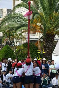 無事、今日は運動会をする事が出来ました その上・・・暑かったw 姉妹で紅組と白組に別れたので~ 勝てました(≧m≦)ぷっ! 優勝はしーちゃんの紅組!(笑) 小学六年生、最後の運動会だった訳ですが~ いやぁ~しーちゃんはエエトコドリでした(笑) 最初と最後に目立ったんですよ(笑) と、言うのも~ 最初は入場する時に校旗を持って一番に出発! そして、最後の閉会式では記念品受け取り係! 良い思い出になりました 競技はと言うとぉ~ 1年生「かけっこ」6年生「徒競走」と 二人して走るだけwの種目なんですが・・・ノーコメントで_| ̄|○||||でもって~団競は、 1年生「玉入れ」6年生「シオターボ」です。 6年生「シオターボ」って意味判ります?w こんなんw さて、どんな競技?w 「シオターボ」って逆に読むと・・・「棒倒し」なんですよ(笑)棒倒しを逆に書いている・・・そうなんですよ!走っていって、棒をたてて棒の上に旗を入れる競技なんです(笑)面白いですね~(≧m≦)ぷっ!1年生「玉入れ」 玉が届いてないw 更に~団演は! 1年生「マジカルスティック」 実は・・・カメラの操作ミスで・・・ 前半が入ってない_| ̄|○|||| ショックでショックで・・・6年生「組体操」 デカイしーちゃんは・・・土台ばっかりでした(笑)6年間、色々な問題?があった学年なんですが(ぉみんな、まとまってて立派でした。目頭が熱くなりました姉妹そろっての運動会は、後にも先にもこれっきり 良い記念になりました。 暑さの為か・・・頭痛が・・・ 優しさ半分のバファリン君も効かず_| ̄|○|||| 今日は早く寝ましたw