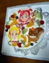土曜日は~ 昼過ぎからnさん一家が我が家に来まして~ 予定を立て今回のメンバーが全員揃った所で 男性陣はお風呂屋さんへ♪ しーちゃんは、習字へ 私とnさんは今夜の買い出し~ 後の子供達はお留守番で(ぉ 買い出しから戻った所で準備開始! 準備が、ほぼ終わった所で男性陣が帰宅。 流れる様にしーちゃんも帰宅してきました♪ そして宴会は始まりました 今日はたこ焼き&お好み焼き+サプライズです(ぉ 普段は、動けなくなるまで食べるんですが~ 今回はサプライズがあるので控えめに終了(ぉ そして~サプライズ!ジャァ~~~~ン 実は、数日前に特注を予約をしてたんですよん♪ めっちゃ可愛い~~~ 問題は、これを切る・・・ 切りやすい様に~まずはフルーツを取りまして… こんな風になりました(笑) 顔は切れない!!キャラの所は、それぞれに渡し食べました とても美味しかったです♪ その後、子供達は眠りにつき 大人達は、いつもの様に朝方まで話し明かしましたよ(≧m≦)ぷっ! 朝は、8時半に最後まで起きてた大人3人が起きて プリキュア5を見ましたよ(≧m≦)ぷっ! その後、子供達が起きてきて全員が起床後 ホットケーキや、昨日のケーキで朝ご飯をし(笑) 小さい姫達の撮影会なんぞw どんどんノリノリになり・・・ あんなポーズやこんなポーズと 姫達は大ハリキリ(笑) 姫達の飽きて来た所でファミレスへお昼ご飯を食べに行き 帰宅後・・・ 10人でテトリス大会を(≧m≦)ぷっ! あっという間に、皆さんの帰宅時間となりました。 楽しい時間を過ごせた事、とても嬉しく思います。 最近・・・3ヶ月強続けていた水やりが億劫になったり なんだか、無気力気味だったのですが~ リフレッシュになりました♪ 我が家に来てくれた友人のみんな 本当にありがとうございました あとは・・・ 撮影の集大成が楽しみです よろしくナツ!(≧m≦)ぷっ!