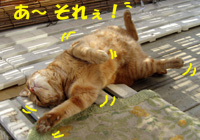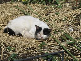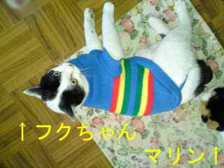 お昼は家族で食事会、といってもお年玉をあちこち配るのがメインですが…。わたしは6人にあげました。結構な出費になります。午後、姉と実家の母とおじいちゃんのお見舞いに行ってきましたよ。頭はしっかりしているので、反応してくれますが、相変わらず苦しそうです。管がいろいろと付けられていて、鼻や口は出血もしていましたよ。アズノールをつけてくれていたり、乾燥するので、お顔に加湿器の蒸気があたるようにしてくれていました。その後、実家の近所のお店でお買いもの。おもに洋服類です。ダウンのコートは姉が買ってくれましたよ♪夜、甥っ子の運転でヨドバシカメラへ。私のプリンターを買いに連れて行ってもらいました。今回はスキャナーもある複合機にしました。そうそう、箱根駅伝もところどころ見ていましたが、すごかったですね。明日も楽しみ。猫小屋を2つ洗ってきれいにしたら、昨夜は青色の屋根の小屋で寝ていた片目君。昼間もそこに寝ていたので、ホカロンを2つ入れたのに、夜見てみたら…隣の赤い屋根の小屋の中で寝ていましたよ。こちらにはホカロンは入れていませんでした。毛布類は洗濯したてでフカフカなので、大丈夫でしょう。今朝は、フクちゃんにお洋服を着せてみました。似合いますか?↑マリン(右端)がクンクン匂いをかいでいます。↑まだ右目が涙目なのです。お鼻も時々つまっています。↑後ろ姿はこんな感じです。黒い尻尾がN字型に曲がっています。他の猫たちが服を着たフクちゃんに驚いているので、すぐに脱がしましたが、夜寝るときは暖かそうでいいかも。ガラガラ声のおデブのハックン。そういえば、キコちゃんもガラガラ声、風邪でしょうか?ハックンはお外が大好き!日向で・・・↓だれかひっくり返っています↑左にいるのは黒猫ジジ、右で倒れている?のはハックン。↑ゴロンゴロン転がるのが気持ち良いようです。さすがに近くにジジが来ると、気にしているハックン。最近は慣れたせいか、鳴かなくなりましたが、ハックンの方が弱虫なのです。下に写っている青い屋根と赤い屋根の小屋は、両方とも片目君用に設置している小屋です。洗ってからまた入ってくれるようになったので良かったです。雄猫はマーキングをするので、時々洗わないとすごい臭いがします…。