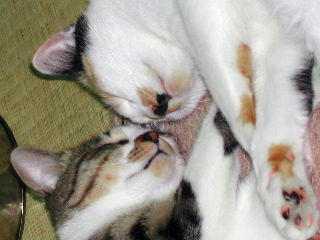 フクちゃんの鼻水・鼻詰まりがなかなか改善しません。朝、起きるとフクちゃんのお鼻が両方とも詰まっていて、カサブタのように固まっていて、閉鎖している状態のことが多いです。お口で息をしていますが、やはり苦しそう。咳も出るので、喉が赤いのかも。抗生物質、粉にして猫缶に混ぜていますが、薬が入っていると残すので困っていますよ。以前、ダニの薬を頂いた獣医さんのだと、人間の小児用の顆粒状のお薬(抗生物質)で水にも溶けやすく、甘いので、シリンジで飲ませることが出来そうです。今度実家方面へ行ったら頂いてこようと思っています。朝、晩、ティッシュなどでお鼻をきれいに拭いてあげるのが日課になりました。拭いても拭いても次から次へと鼻水がたくさん出てきます。くしゃみをたくさんしてくれると良いのですがー。↓我が家へ初めて来た頃のフクちゃん。 眼やにが出ていて、全体的に薄汚れていました。 片目君が連れてきた子ですが、フクちゃんは生れてから我が家へ辿り着くまでの数カ月間、一体どんな風に生きてきたのかしら?↓まだ来たばかりのフクちゃん。片目君の小屋でお昼寝。 (これらの写真は以前掲載したことがあります)↓家猫になったフクちゃん。 今も毎日このキャットタワーで寝ています。