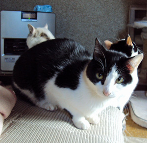 我が家の猫ちゃんたち、皆元気です。ただ、キコちゃんのお口とフクちゃんの鼻水が…。そして、たまにハックン達も咳き込んだりしますが…食欲もあるし…。最近のももさんの写真です。左後ろ(白い猫)がハックン。とっても寒がり屋さんで、いつもヒーターの真ん前を陣取っています。右後ろの猫は、マリンです。数日まえまで、発情していたももさん。やっと落ち着きました。すばしっこくて、警戒心が強い子なので室内でもなかなか捕まえられず、不妊手術やずれている顎の状態を獣医さんに診ていただいていません。ずれている顎の方ですが、猫缶やカリカリも食べているので、下手に手術するよりも、このままの方がいいかなって思っています。