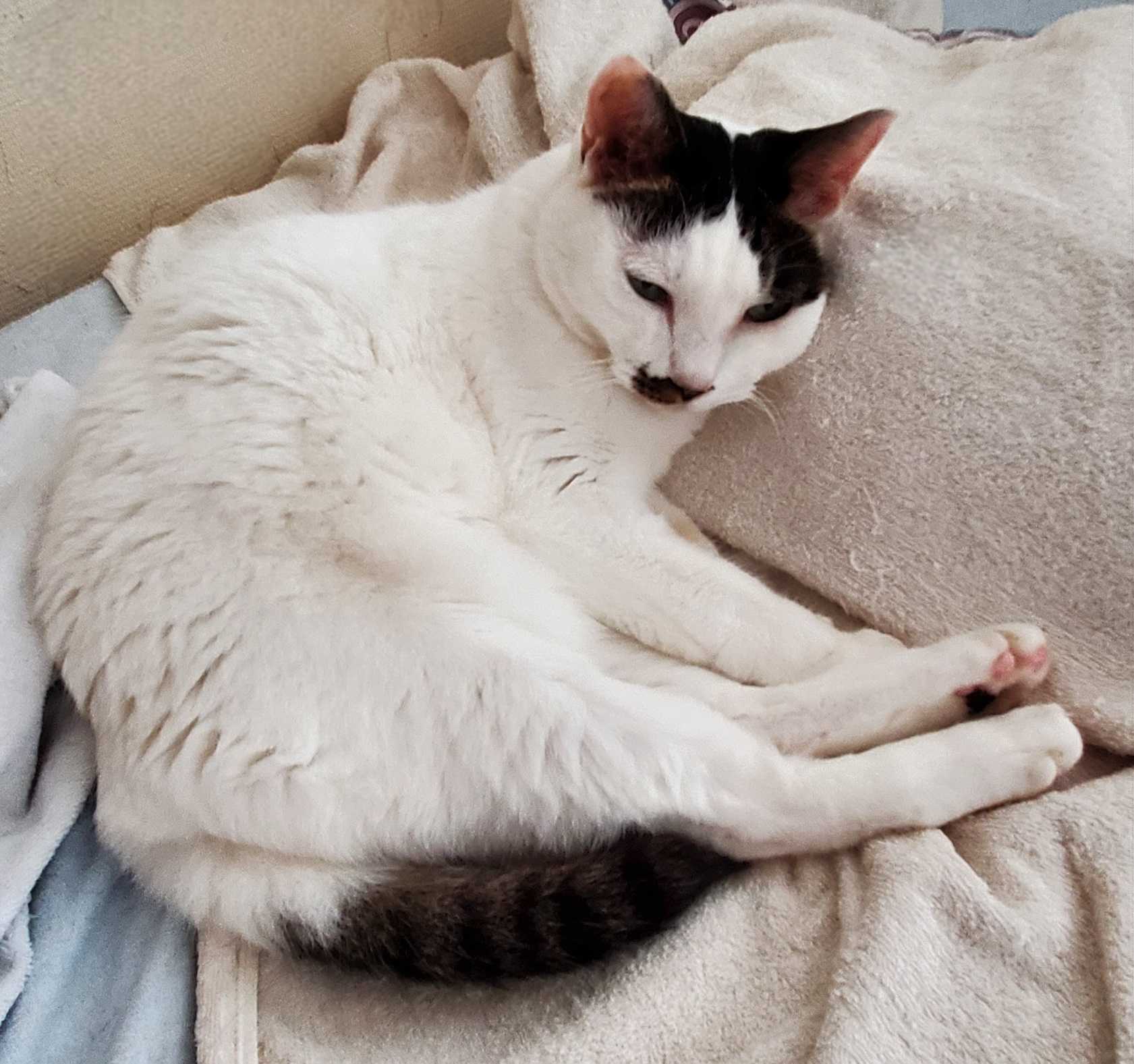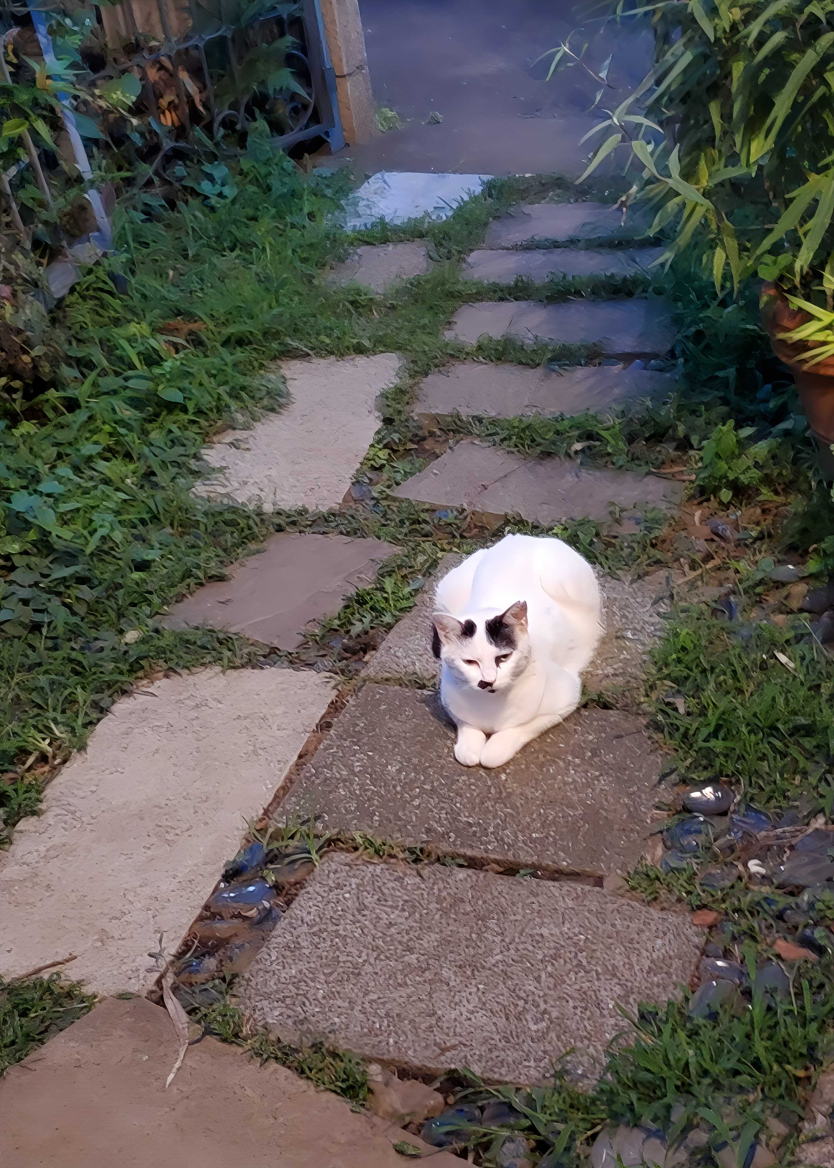 随分前からゆきちゃんの鼻詰まりで通院しているのですが、一向に良くなりません💧抗生剤などの注射も殆んど効果無し。そして、一番心配している腫瘍の類いでは、もしそうなら今頃生きていないとの事で、私もそう思ってはいますが…さて…。ただ最近、感じるのが…鼻筋(目と目の間から鼻先の半ばあたり)が、以前のゆきや他の子達と比べて何となく腫れているような…💦でも…もも母さんも鼻筋が通っていて高いから、どうかしら。ただ、腫瘍等でなくても鼻詰まりは匂いが分かりにくいですし、呼吸が苦しそうなので、このまま放置は気の毒。今は、お盆休みが多いし、骨折や手術で離脱している同僚がいる為、なかなか休めないけど、CT等の検査で鼻詰まりの状態がわかるかしら。ゆきが我が家に来たのは、2015年5月27日(当時の写真)なので、現在は既にシニア猫、あまり過度な検査も心配ですし…💧さて、どうしたら良いのか…😓先週の土曜日からずっと雨降りでなかなか逢えなかったチロ。今日、仕事から帰宅して庭の蚊取り線香、カリカリなどをセットして玄関前に戻ると、既に来てくれていて玄関前に置いておいたカリカリを食べて始めていましたよ。庭から出てきた私を見て、ちょっとビックリしていたけれど、呼び止めて慌ててウエットも出してあげました。たくさん食べてくれたので嬉しかったですにゃ。ホントに良かったです🥰ノミダニの飲み薬は、昨日通関後に配達されるとの連絡が正式に来たので、もうそろそろですね。