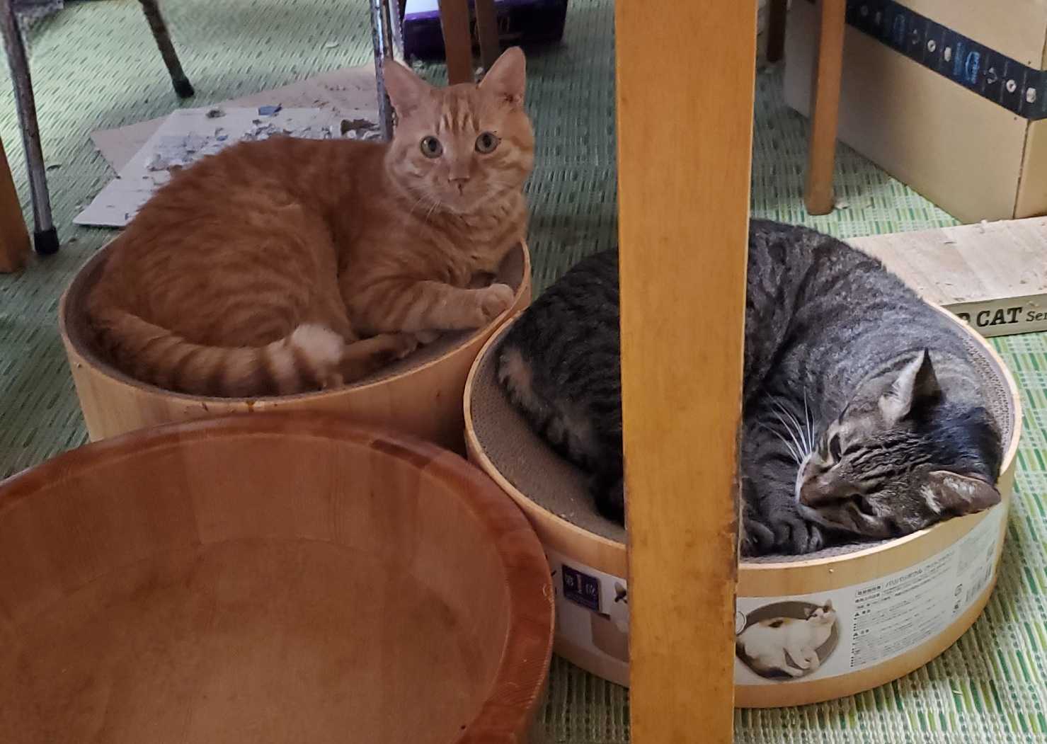 今朝は、茶々丸チャーちゃんの隣の爪研ぎにたっくんが寝ていました😊仲良しで良かったです🐾先日まで猛烈な暑さでしたが、昨日からは少し落ち着いて以前より過ごしやすくなりました。今夜もチロがご飯を食べに来てくれました💖たくさん食べて欲しいので、我が家の家猫達にも好評な美味しいカリカリとウエット中心のメニューです(笑)