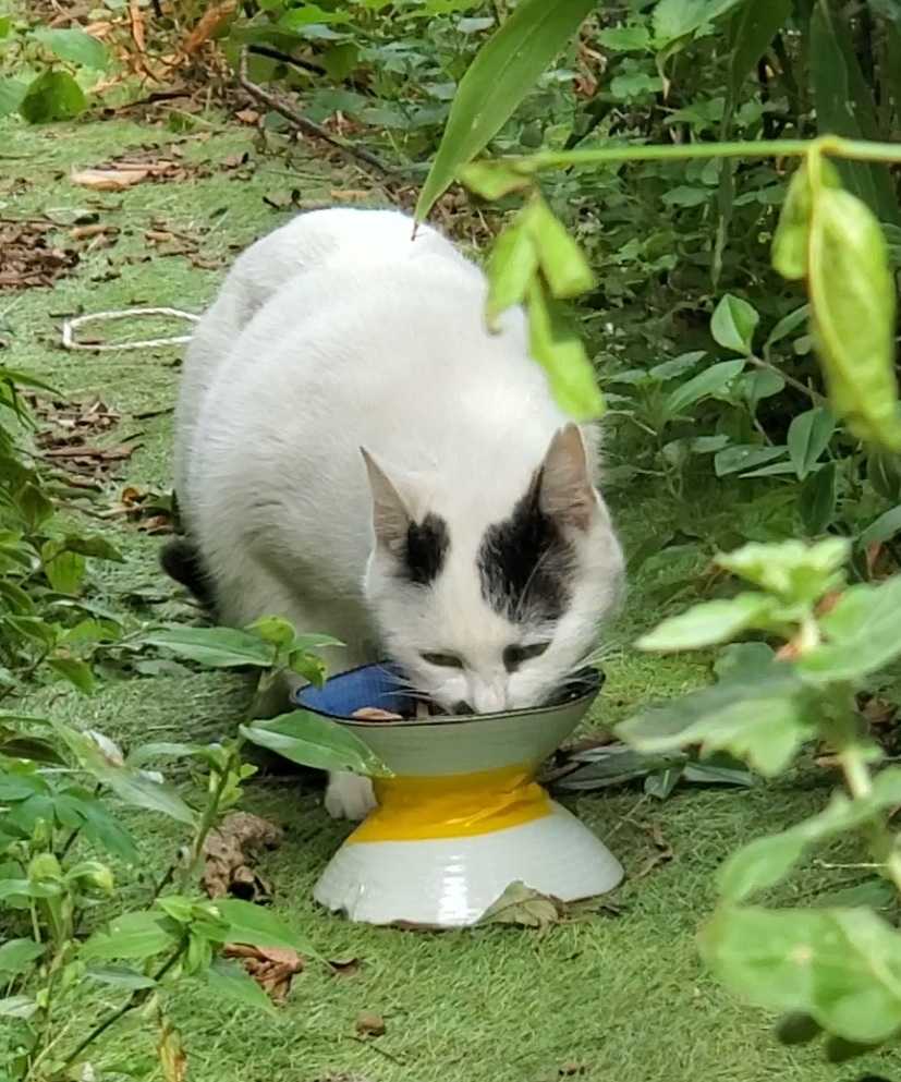 a/d缶は、時々もも達高齢猫に食べさせていますが、量が多いので美優達にもお裾分け。そしてお外暮らしのチロにもあげています。