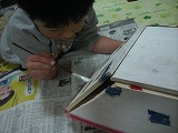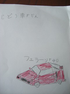 ☆一年生のこくごの授業、単元「じどうしゃくらべ」☆これは夏休み明けのこくごの時間で、ずかんを手作り。にゆの好きなお絵かきができる、こくごの授業だなんて楽しんで進められるようにと、近頃の学校はおどろき~。絵を描きあげるのに一時間ではなく、何日もこれに取り組んでるようだったし私の頃とは、時代も変わったものだ。にゆは、乗り物お絵かきが大好きで、正面・真横だけではあきたらず「斜めから見たところが描きたいのに、うまく描けない」とイライラしていたものだから、夏休みだけ、お絵かき教室へ通い、そこで「にゆくん特別コース」を設けてもらう始末。そこでひたすら、電車と自動車の遠近法を納得いくまで描きこんだみたい。リア部分が、ぎこちないけど、まっ一年生だから本人が満足してればね~。こんなことで、夏休み明け、こくごの授業が自動車ときたもので勉強で目立たないにゆが、本領発揮♪ 「じどうしゃはかせ」と呼ばれるきっかけに。学校嫌いになるよりは、得意な図工だけでもいいから、張り切っておくれ~