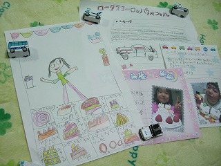 もう、3月も半分終わりますね。にゆとももも、あと数回登校すれば、4月に2年生です。先日、にゆ☆ももは7歳の誕生日を迎えました。当日、私とももが買い物で、とあるケーキ屋さんの前を通り過ぎたところ「ちょっと! ちょっと!」と、中からケーキ屋さんのおばさんが出てらして「これね~、少しクリームがかたむいて売り物にできないから、食べてくれない?」って。そこには、2段のデコレーションケーキ1ホールがこのケーキ屋さんは、子供たちが小さい頃、何度かバースディケーキを配達してもらっていたお店でしたなので、ここのおばさんは、二人の誕生日を覚えてくださっていたのでした。今年は、ここで予約してなかったし、申し訳なかったけどお言葉に甘えて、タダで、頂いちゃいました子供たちも「覚えてもらってた」って大喜び。だって、うちの子たちには、お誕生日だからとお祝いしてくれる身寄りが、いないものですから。身内でもないのに誕生日を覚えてくださっていたこと、呼び止めてまで、下さったこと、それが私にもとってもとっても嬉しくて胸があつ~くなりましたウルウル・・・で、この日、別のお店で予約していたもうひとつのケーキと、二つでお祝いしました。宿題の「あのねちょう」には「せんせいあのね・・・」とこの日の素敵な出来事を書いていました。今日は、そのケーキ屋さんへ、二人が書いたお礼状を持って、モンブランを買いに行ってきます。