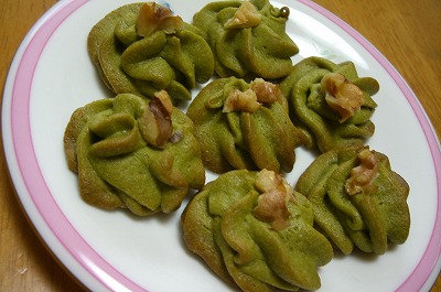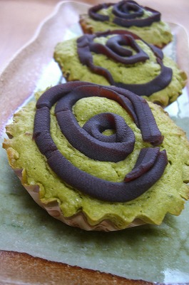 またまた粉末緑茶で、チャレンジです。ホットケーキミックスで作るマドレーヌに緑茶の粉を入れました。ミックス粉200に対し、粉末緑茶を小さじ2でほろにが体験です。市販のあんこをグルグルと搾り出してみました。にゆが、絶賛してくれたのでまた、今度作ってしまうかも。。褒められると、つい何度も作ってしまう・・・先日、スノーボールクッキーをおみやげにもっていった方からラベンダーをいただきました。おうちで咲かせていらっしゃるのをいただけるなんて、嬉しかったです。私、ラベンダーは夏越しがヘタなんですよね~。だから、こんな綺麗なのがおうちにある方、うらやましい