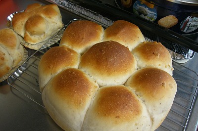 昨日は、みかさんの本からちぎりぱんを作ってみました。レシピより小さめの、お菓子の缶を(15×15)使ったので、入りきらない生地は、丸めて焼きました。 ほかほか、やわやわで、ラズベリーとチェリーのジャムを添えて即完売でした。出来立ては、手がとまりません。 昨夕、何かのニュースで「当時、この学校は中間テストで・・・」というのが聞こえてきました。その場にいたにゆは「中間テストというのは~ 15分やって、2時間勉強したら終わりってテストだよ!」とニュースに説明を付け加えています。「んっ? 今なんていった?」私も、もう少しで、にゆの話を聞き流しそうでしたどうやらにゆは、中間テストのことを「中間やすみ」の15分間のテストだと思っていたようです。それからしばらくお腹を抱えて笑いこけながら、にゆにはきちんと教えておきました。わかってるようで、わかってない、2年生の落とし穴でした。 今日は、五月飾りを片付けながら緑茶でチャレンジ、只今、二次醗酵中です。どんなのになるか、ドキドキ~出来上がりはまた、報告しますね。