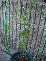スリット鉢で育てている、ぶどうと柿。去年は念入りに剪定を勉強して、今年こそと期待していたのに、咲きません。咲くなら、もう、とっくに咲いていないと、おかしい時期ですよね。両方とも、子供たちと食べた種から育てて、4年が経ちました。 ぶどう日当たりも確保してたのに、どうしてだろう。今年出た枝先、少しつまんで減らしたけど減らしかた、間違ってるの??柿は、春に葉が出て、もう夏の葉っぱが芽を出しています。スリット鉢は「柿八年」もかからないそうで、ころあいなんだけど。ピンクのアジサイ去年の晩夏に、半分ねぐされしちゃって残念なことに、一つしか咲きませんでした。それが今、ドライフラワーになりかけてます。ピンクが淡いグリーンに・・・花が重くて、茎が折れたせいで、偶然です。刺し木をしたから、来年はもう少し花が増えるかなってまたまた、期待。去年のチャレンジ一年生のミニひまわり撒き残りの種があったので、撒きました。今日、咲いたところで明日には、もう少し、パッと開いてくれるでしょう。花壇ですが30センチほどのミニです。チャレンジ2年生のミニトマトも、ポチッと張付けました