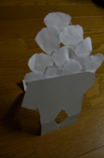 先日の、お月見の日のこと。こしあんを巻いたお月見団子(この辺だけかな?)を買ってきて食べたあと、夜には「綺麗なお月さんやねぇぇ」といいながらまた、にゆの工作が始まりました。「お月見団子作ってるし、あとで2階へ持っていこう!」とできたのが、これ。どこの本で見たのか(チャレンジ2年生?)三方の上に、お団子が行儀よく並べてあります。ペラペラでは、立たないので後ろが「写真たて」のようにしてありました。考えたもんだねぇぇで、お月さまとツーショット。ガラス越しなので、まん丸に写ってないけど左上のキラッとしたのが、お月様です